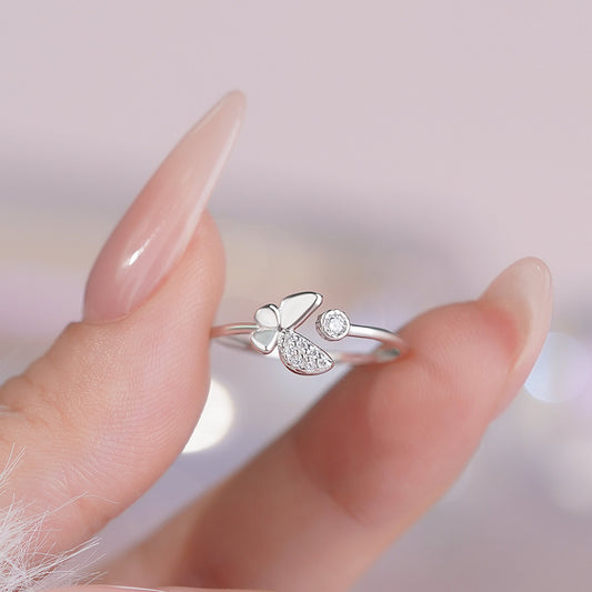 E廠【YC3213R】S999足銀簡約蝴蝶鋯石戒指女甜美百搭清新時尚小眾指環 25.10-3
