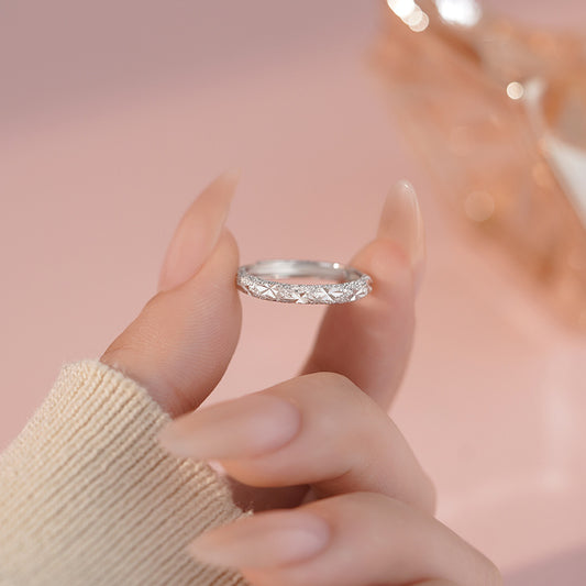 E廠【YC3281R】S999波光粼粼車花戒指女冷淡風簡約百搭通勤時尚開口戒 25.03-3