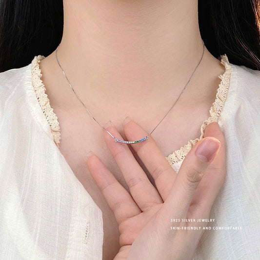 E廠【YC3278N】S925純銀甜美彩鑽微笑項鍊女夏日小清新新款鎖骨鍊頸飾品 24.03-5