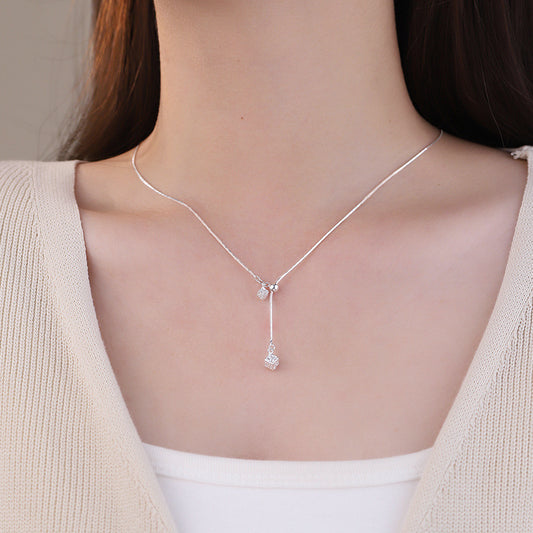 E廠【YC3249N】S925純銀方塊流蘇項鍊極簡風秋冬新款溫柔文藝小眾鎖骨鏈 24.12-3