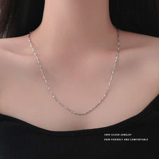 E廠【YC3293N】S999足銀簡約元寶鏈項鍊輕奢時尚無吊墜素鏈鎖骨鏈小眾設計感 24.01-1