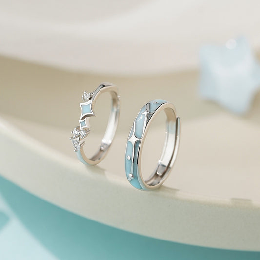 E廠【YC3291R】原創S999足銀四芒星情侶對戒相遇流星夜光效果甜美手飾 25.10-1
