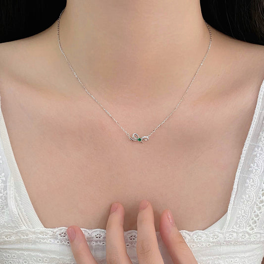 E廠【YC3243N】S999足銀蝴蝶結粉鑽項鍊百搭慵懶風氣質小清新小眾鎖骨鏈 24.07-3