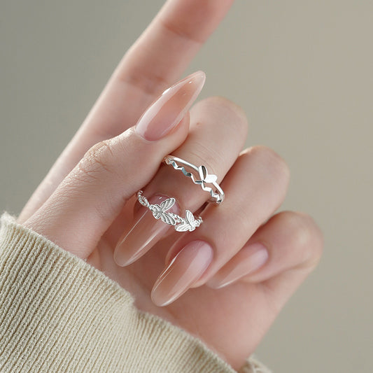 E廠【YC3250R】S925純銀波浪愛心蝴蝶戒指森系甜美氣質搭配高級小眾手飾 25.02-4