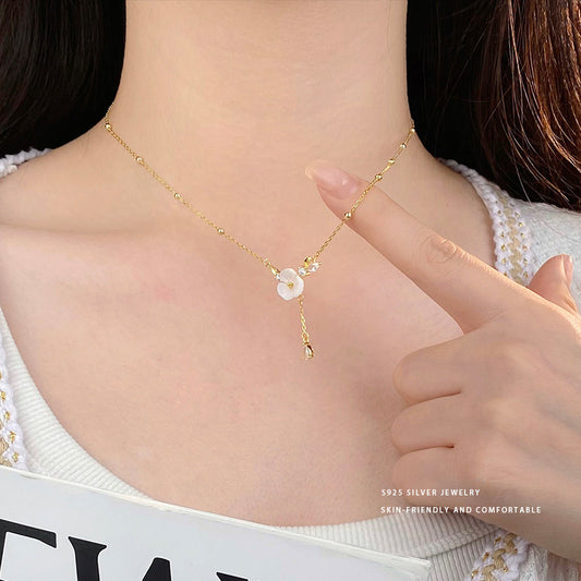 E廠【YC3486N】S925純銀淡雅花朵流蘇項鍊女春季清新設計感氣質鎖骨鏈 24.04-1