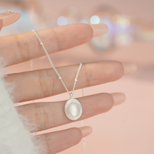 E廠【YC3454N】S925純銀橢圓形貝殼項鍊輕奢小眾高級法式復古溫柔鎖骨鏈 25.04-2