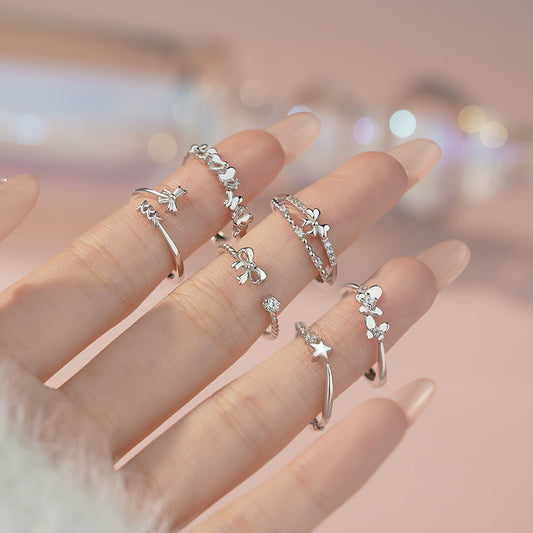 E廠【YC3479R】原創S925純銀悅心系列可愛蝴蝶戒指蝴蝶結戒指女甜美指環 25.04-2
