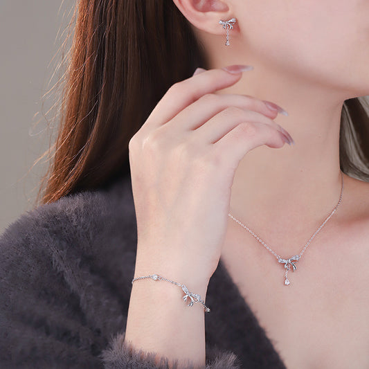 E廠【YC3455N】S999足銀蝴蝶結流蘇項鍊小眾設計甜美氣質 24.12-4