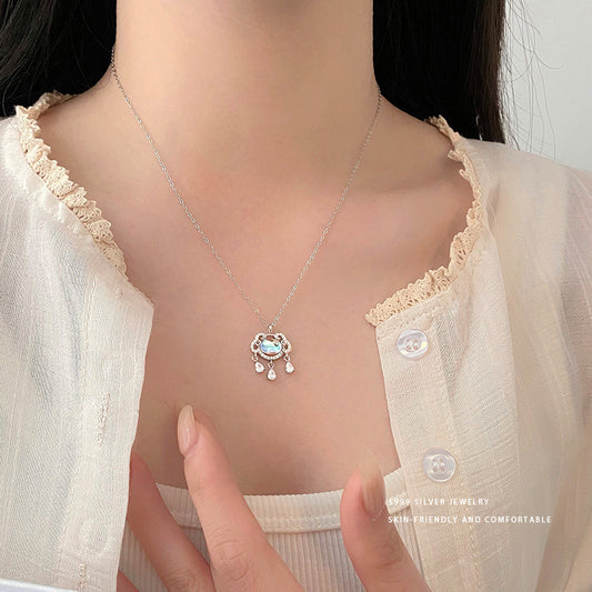 E廠【YC3481N】S999足銀幻彩平安鎖水滴流蘇項鍊女本命年輕奢高級感頸飾 24.02-1