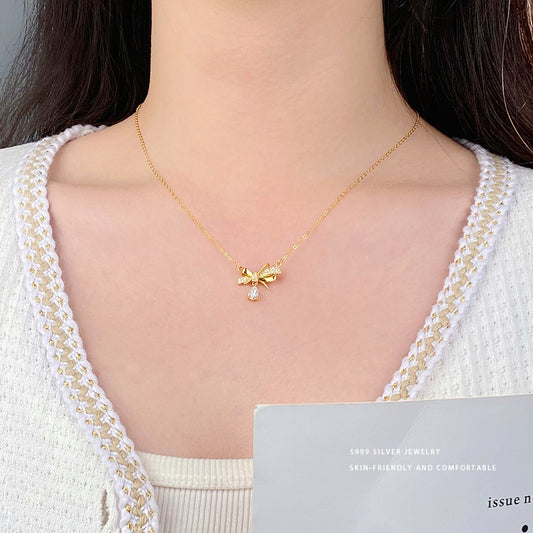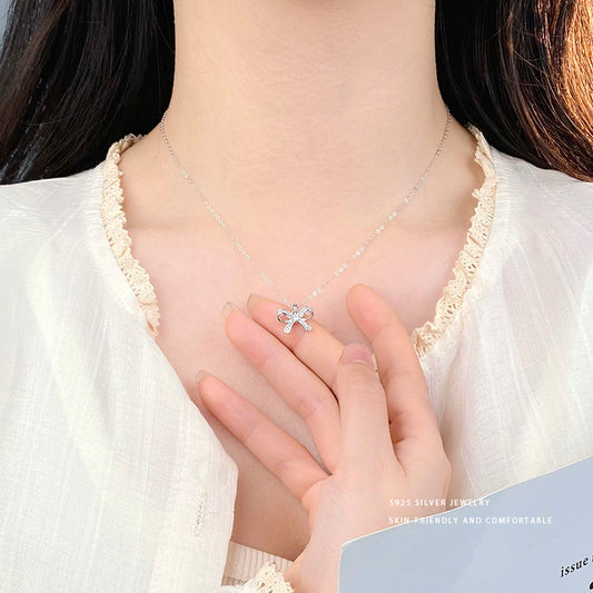 E廠【YC3499N】S925純銀輕奢蝴蝶結項鍊女高級感設計感優雅氣質鎖骨鏈 24.03-5