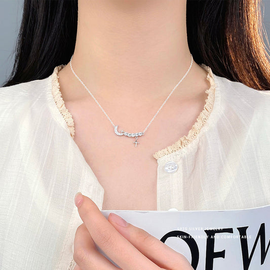 E廠【YC3497N】S999足銀精美輕奢高級感星月項鍊超閃時尚精緻小巧小眾鎖骨鏈 24.01-3