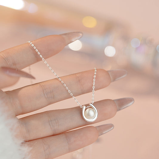 E廠【YC3545N】S999足銀U形珍珠項鍊輕奢高貴設計小眾文藝清新簡約鎖骨鏈 25.04-4