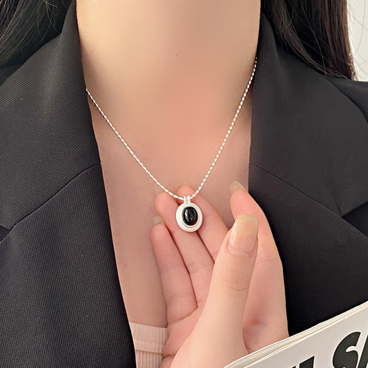 E廠【YC3510N】S925純銀個性圓形黑白瑪瑙項鍊女時尚冷淡風高級感鎖骨鍊 24.02-3