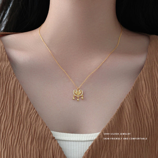 E廠【YC3550N】S925純銀新中式平安鎖項鍊女國風國潮輕奢高級感鎖骨鏈 24.05-1