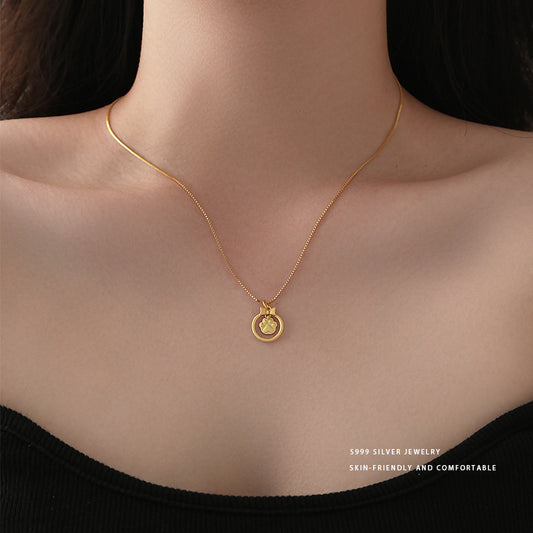 E廠【YC3508N】S999足銀可愛珍珠貓爪項鍊女甜美淑女童趣創意新品鎖骨鏈 24.06-4