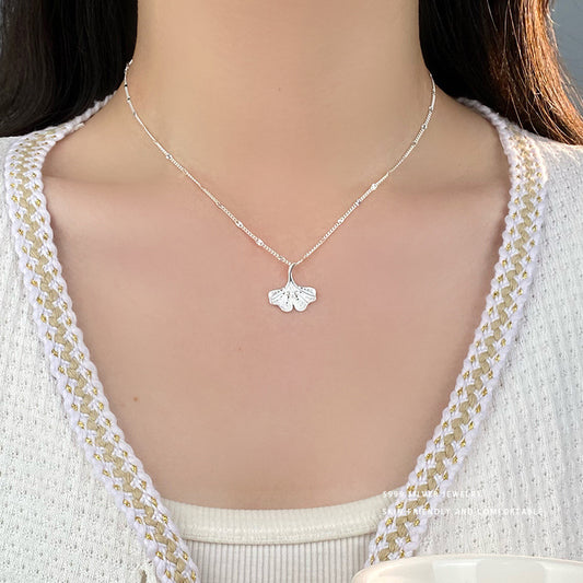 E廠【YC3621N】S999足銀簡約杏葉項鍊女小眾設計感氛圍感時尚鎖骨鍊頸飾 24.04-2