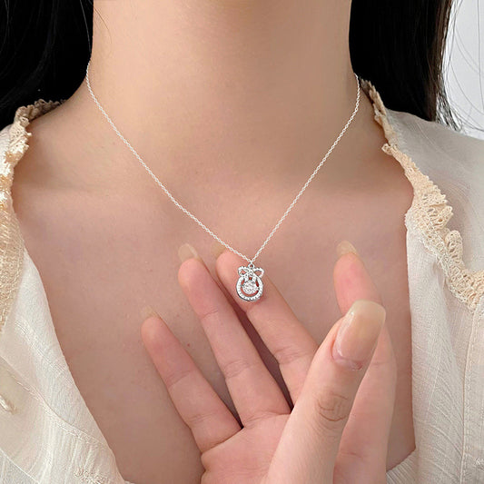 E廠【YC3573N】S925純銀甜美蝴蝶結圓環鋯石項鍊女輕奢少女感百搭鎖骨鏈 24.02-3