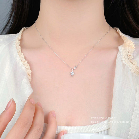 E廠【YC3591N】S999足銀精美鋯石雪花項鍊女日常通勤百搭款輕奢鎖骨鍊頸飾 24.04-2
