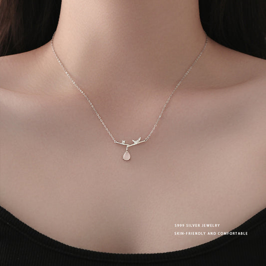 E廠【YC3604N】S999足銀竹節葉子白瑪瑙水滴項鍊輕奢小眾新中式高級感鎖骨鏈 24.01-1