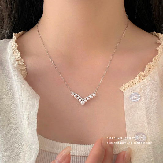 E廠【YC3587N】S999足銀氣質V字珍珠項鍊女輕奢高級感法式優雅浪漫頸飾 24.02-1