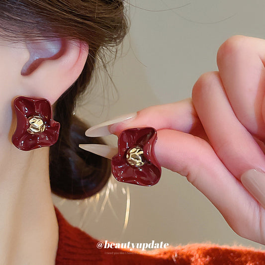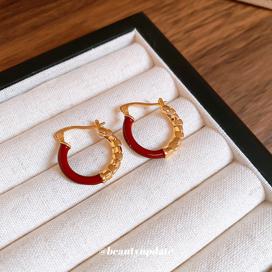 A廠【HE23708】真金電鍍滴安可拉紅色耳環復古小眾百搭耳環輕奢高級感時尚耳環女 24.11-4