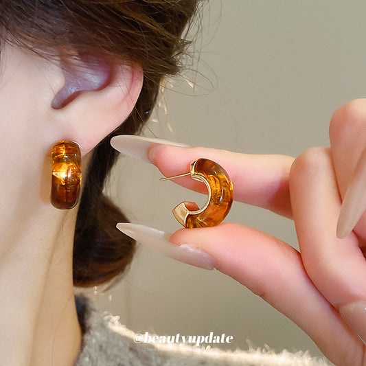 A廠【HE23745】925銀針美拉德樹脂C型耳環小眾百搭耳環時尚氣質耳飾輕奢高級感秋冬 24.11-4