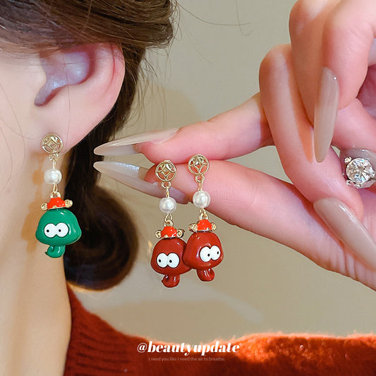 A廠【HE23737】925銀針滴油卡通小蛇珍珠耳環本命年時尚百搭耳環輕奢高級感耳飾秋冬 24.11-4