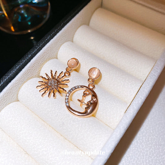 A廠【HE23801】925銀針鑲鑽太陽花星星貓眼石款耳環輕奢高級感耳環女不對稱耳飾小眾 24.11-5