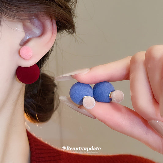 A廠【HE23760】925銀針植絨圓豆豆撞色耳環女款兩戴小眾耳環時尚氣質耳環高級感 24.11-4