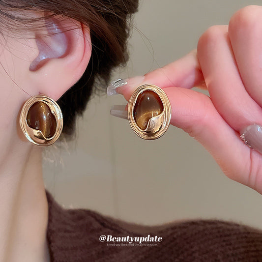 A廠【HE23798】925銀針美拉德橢圓樹脂耳環復古小眾氣質耳環輕奢高級感時尚耳環 24.11-4