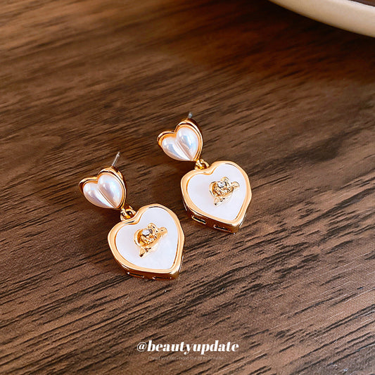 A廠【HE23743】真金電鍍鑲鑽愛心珍珠耳環女法式氣質小眾耳環輕奢高級感時尚耳環 24.11-4