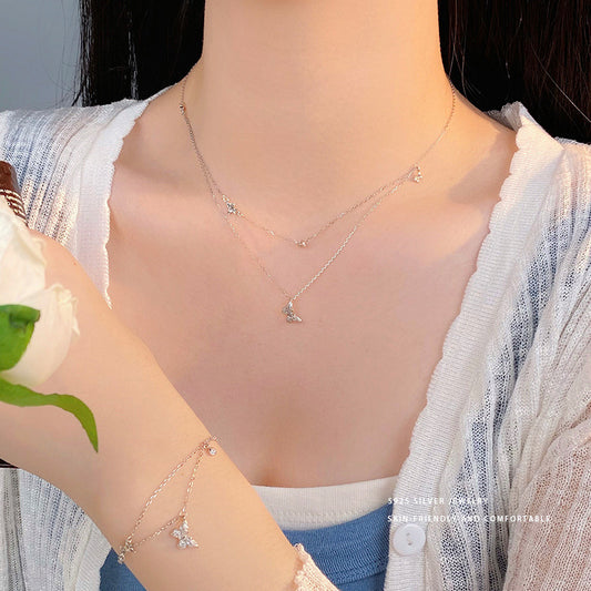 E廠【YC3742N】S925純銀氣質蝴蝶雙層項鍊女ins輕奢小眾簡約夏日鎖骨鏈 24.04-4