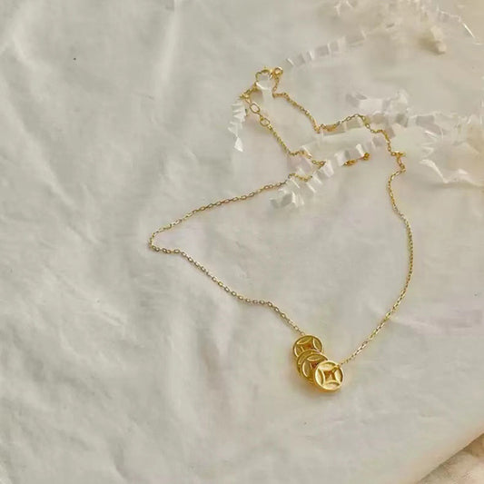 E廠【YC3746N】S999足銀新款金錢銅錢項鍊女款2024爆款小眾設計高級感頸鍊 24.04-2