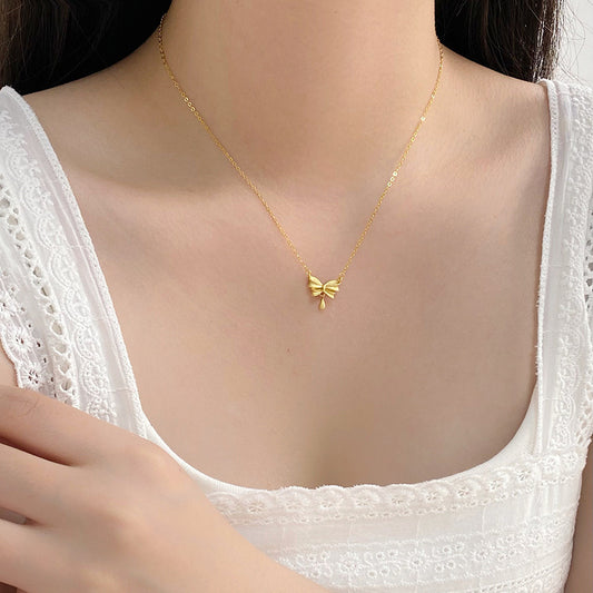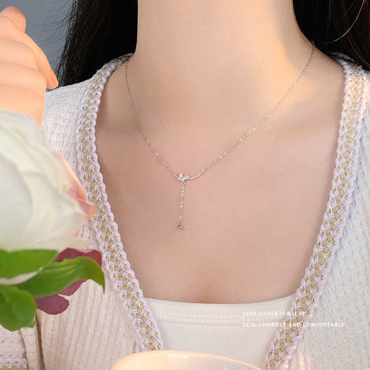E廠【YC3749N】S999足銀蝴蝶結水滴項鍊輕奢感高級設計感清新甜美鎖骨鏈 24.07-2