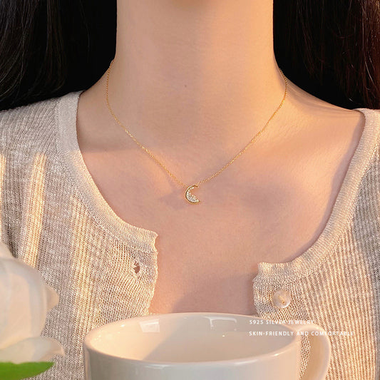 E廠【YC3740N】S925純銀ins滿天星月亮項鍊女輕奢時尚高級設計感鎖骨鏈 24.04-3