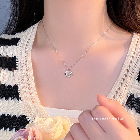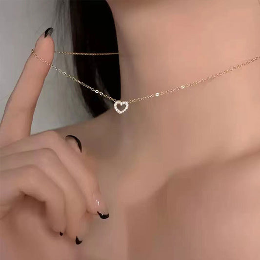 E廠【YC3735N】S925純銀甜鏤空愛心項鍊女輕奢小眾迷你鎖骨鏈 24.02-3