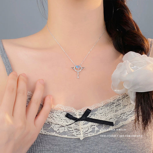 E廠【YC3753N】S925純銀幻彩愛心權杖項鍊女小眾設計感魔法少女鎖骨鏈 24.05-1
