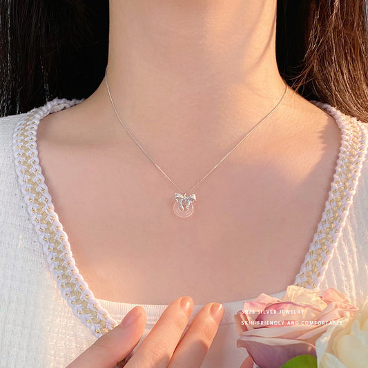 E廠【YC3751N】S925純銀甜美蝴蝶結平安扣項鍊女小眾設計感頸飾 24.05-3