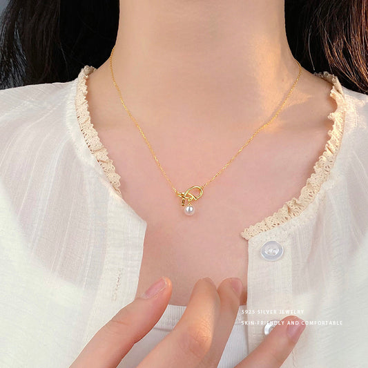 E廠【YC3731N】S925純銀時尚扭結珍珠項鍊女輕奢高級感夏季新款鎖骨鏈 24.04-4