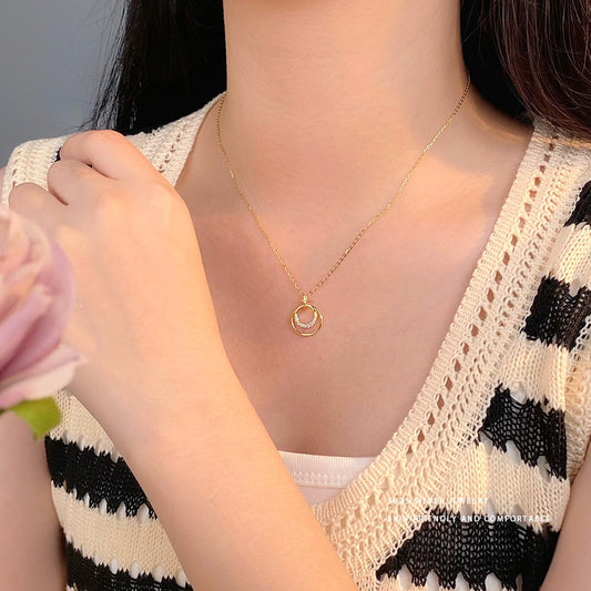 E廠【YC3796N】S925純銀四芒星圓環項鍊時尚通勤個性輕奢文藝簡約小眾鎖骨鏈 24.07-1