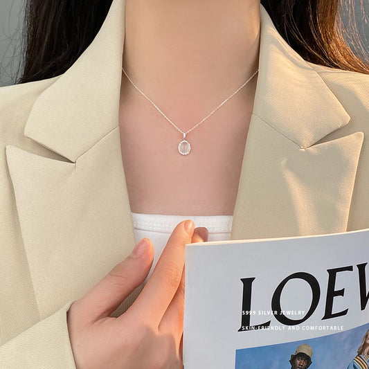 E廠【YC3782N】S925純銀簡約橢圓形瑪瑙項鍊女ins風時尚冷淡風夏日新款鎖骨鏈 24.04-3