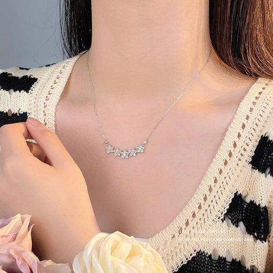E廠【YC3787N】S925純銀精美五朵花朵項鍊女甜美百搭氣質鎖骨鍊新款頸飾 24.05-4