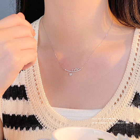 E廠【YC3780N】S925純銀簡約滿鑽蝴蝶結項鍊女輕奢高級設計感百搭鎖骨鏈 24.04-3