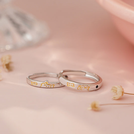 E廠【YC3781R】原創S999足銀甜蜜喵旺系列情侶對戒可愛童趣手飾 25.05-3