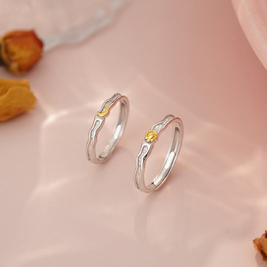 E廠【YC3779R】原創S999足銀日月雙輝系列情侶對戒小眾設計清新手飾 25.05-3