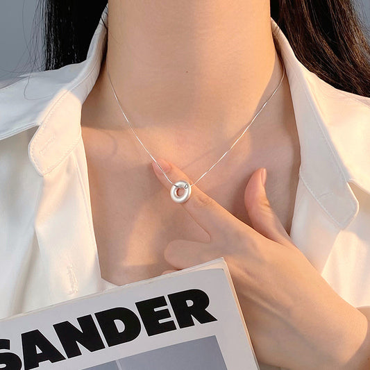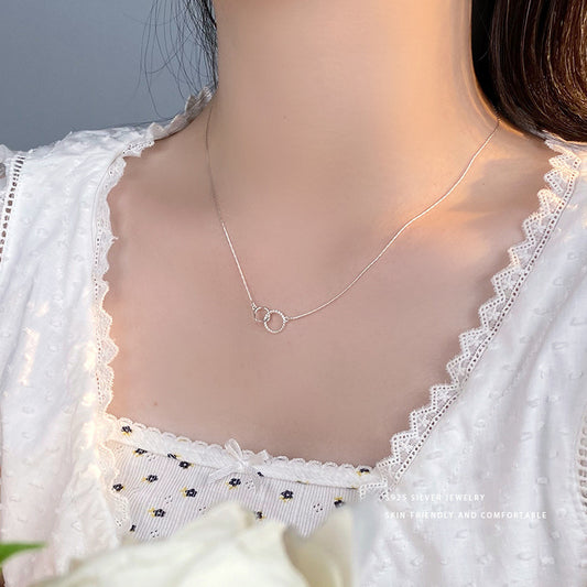 E廠【YC3896N】S925純銀簡約環環相扣項鍊女款簡約設計師頸鍊冷淡風鎖骨鍊 24.05-5