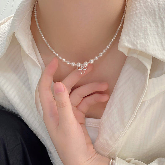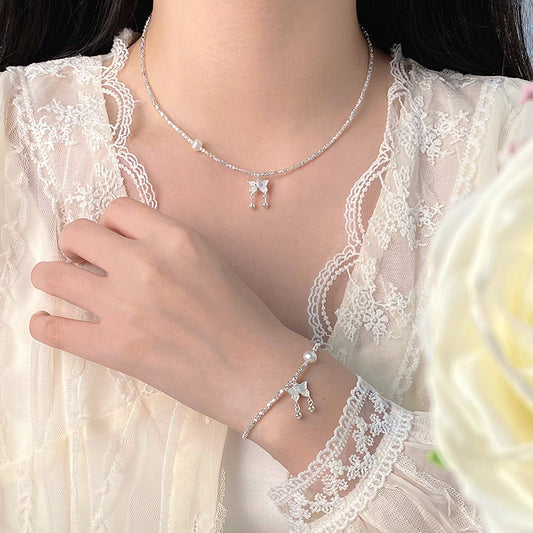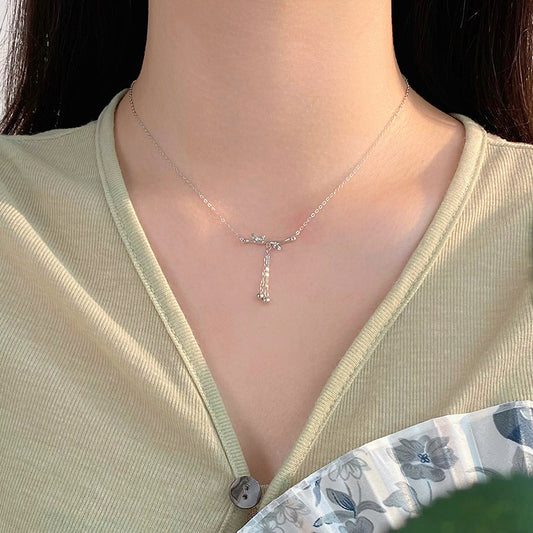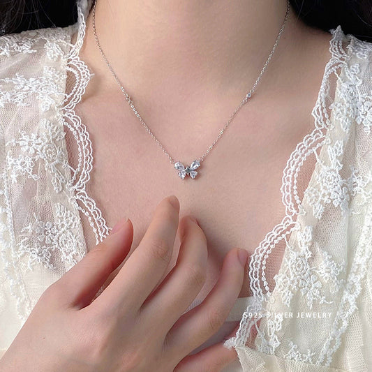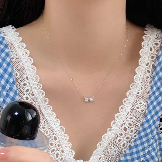 E廠【YC3905N】S925純銀精美鋯石蝴蝶結項鍊女甜美輕奢高級感ins新款鎖骨鏈 24.05-1