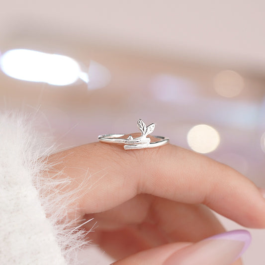 E廠【YC3900R】S999足銀輕奢樹枝樹葉小芽開口戒指女感氛圍感森系高級感指環 25.07-1