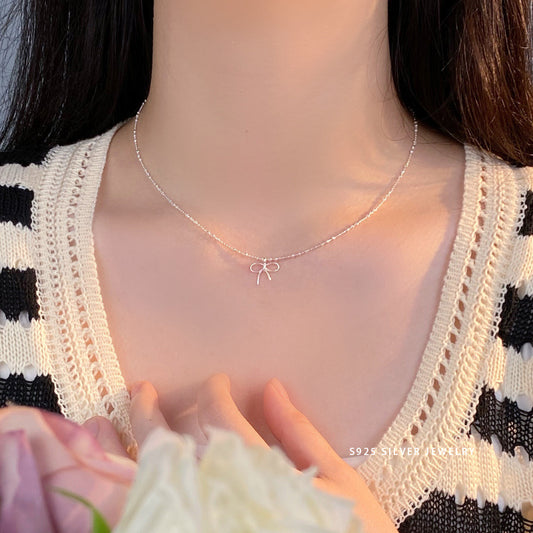 E廠【YC3904N】S925純銀甜美蝴蝶結項鍊女新款線條春夏百搭款鎖骨鍊頸鍊 24.06-1