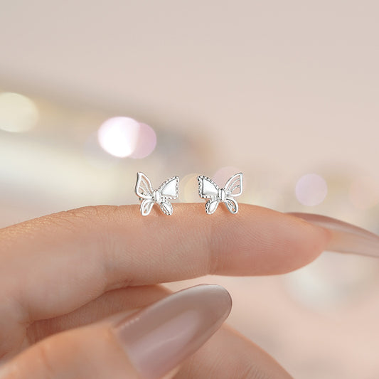 E廠【YC3891E】S999足銀韓版韓風蝴蝶螺絲耳環女氣質甜美溫柔可愛耳飾 25.05-3